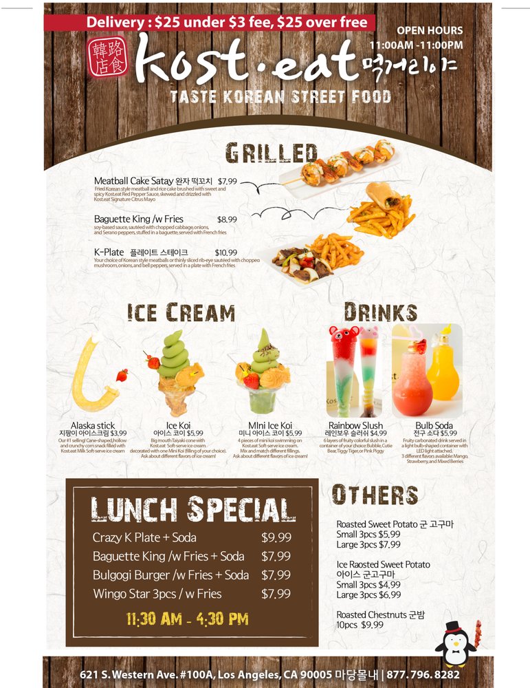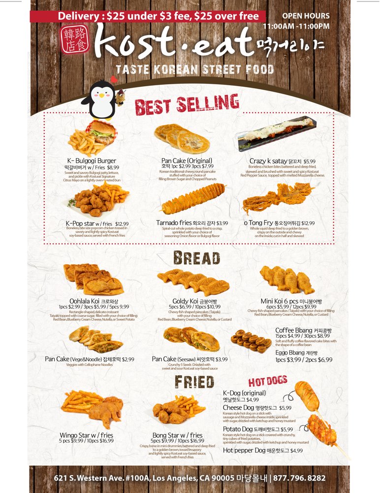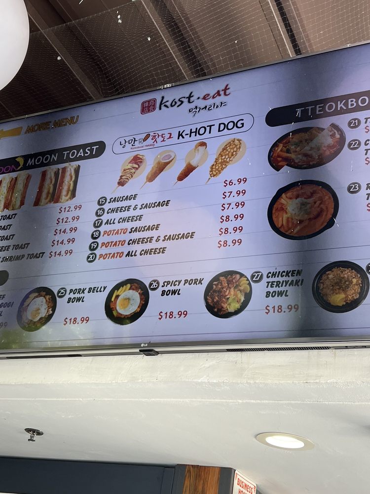 Kosteat, a Korean food establishment located in Los Angeles, offers a variety of options from crispy wings to savory pork belly bowls. Customers have praised the outdoor seating and quick service, making it an ideal spot for a quick snack or meal. Standout dishes include the popular sodduck, a delightful combination of dduk and sausages, and the Moon Toast with perfectly cooked shrimp. The K-Hotdogs are also a must-try, filling and flavorful. While some items like the Bulgogi and Pork Bowls may fall short on meat quantity and flavor, the overall experience at Kosteat remains positive. With a large menu offering street eats done well, Kosteat captures the essence of Korean cuisine in a convenient and casual setting.